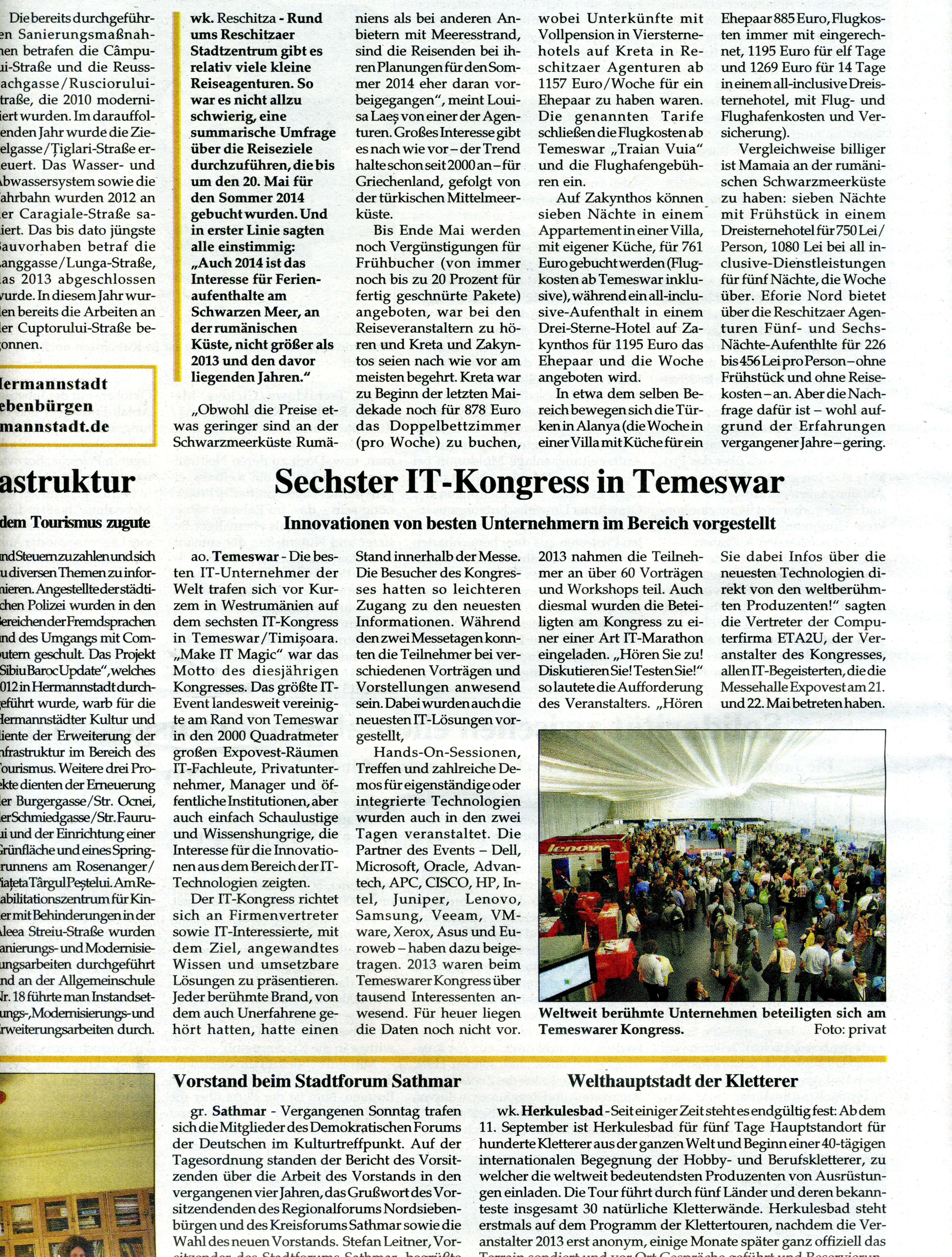 Banater Zeitung – Sechster IT-Kongress in Temeswar